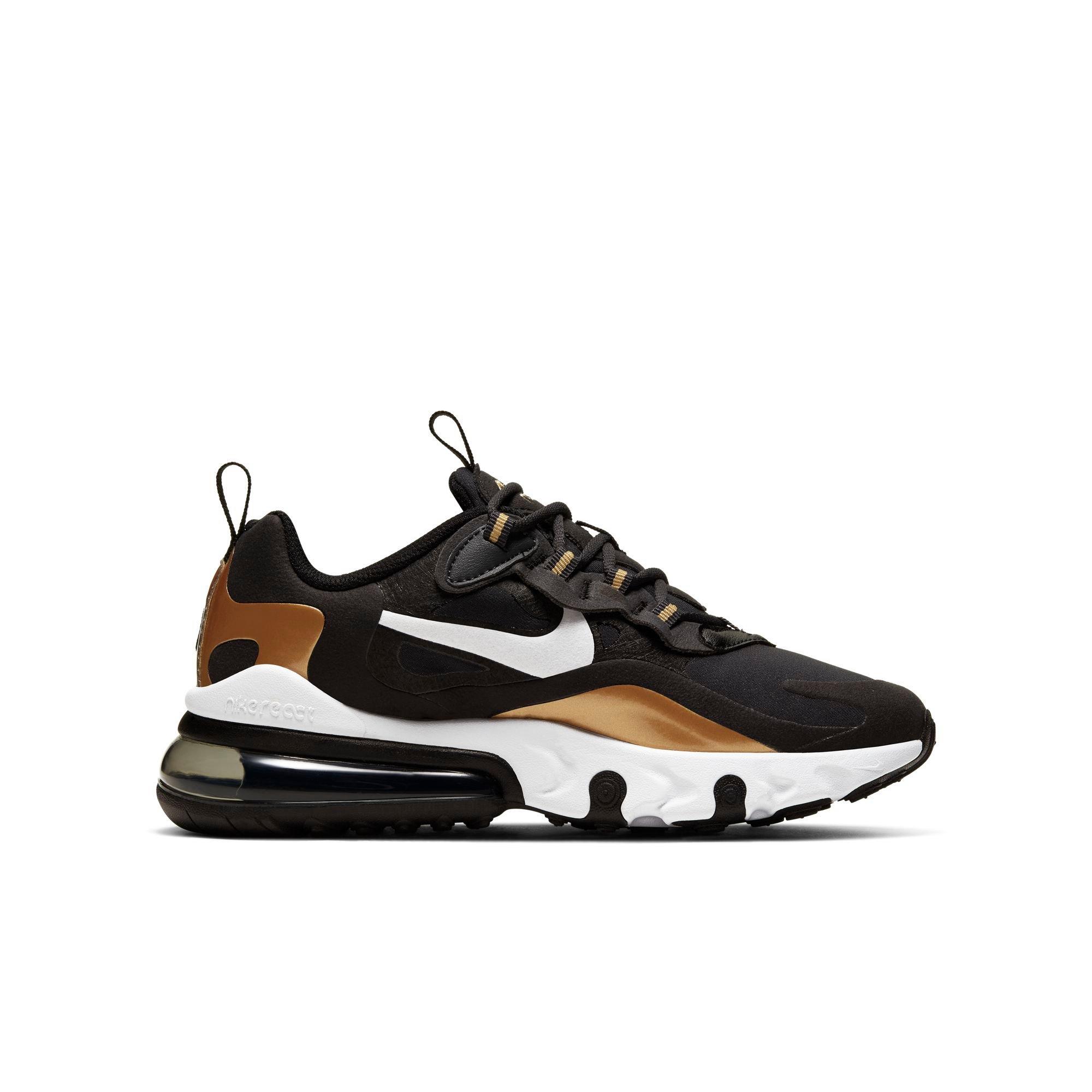 Nike Air Max 270 React Sneaker In Black White Bleached Coral Metallic Gold Revolve