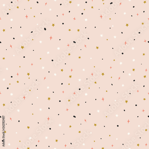 Luxury Golden Rose Color Seamless Pattern Confetti Stars Background For Wrapping Paper Fabric Textile Trendy Hand Drawn Backdrop In Rose Gold Black And White Colors Buy This Stock Vector And Explore