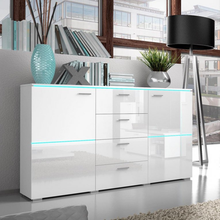 Naia Komoda 3 3 Fioke 154x50x70 Cm Bela Visoki Sjaj