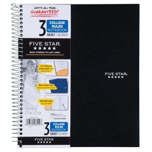 Five Star 3 Subject College Ruled Spiral Notebook Color Will Vary Target